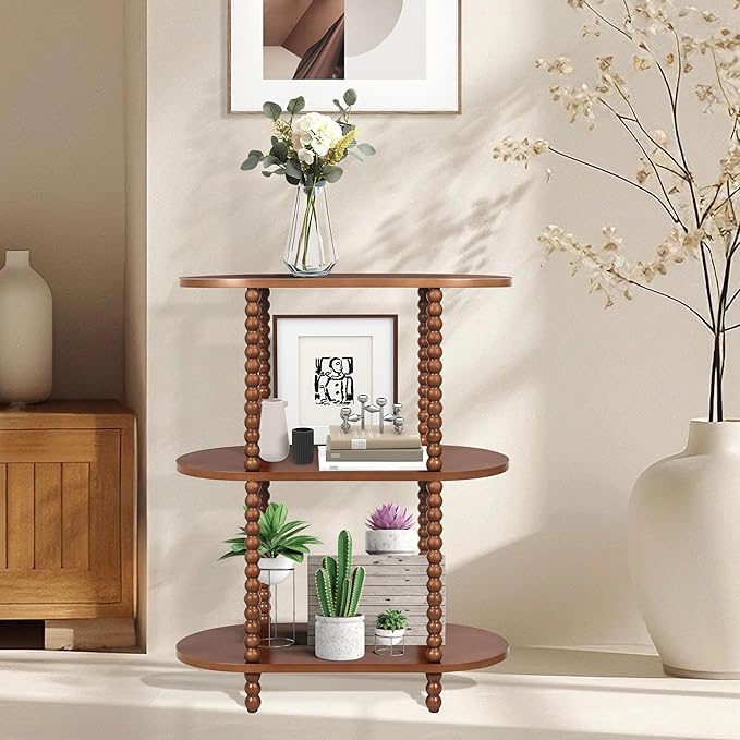 • Vintage Entryway Table: This tall side table features a cozy wood-grain finish, centered around its graceful oval tabletop and supported by intricately carved vintage-style legs. The design beautifully blends modern elegance with timeless charm, bringing a touch of understated sophistication and retro warmth to any room