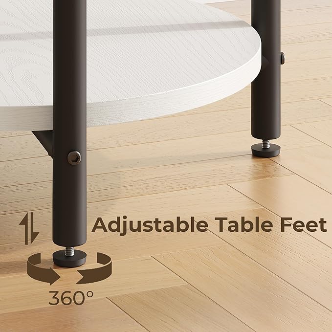 • 【More Sturdy and Stable】This 15.8-inch diameter side table features stable steel legs reinforced with round tubes, with the top shelf capable of supporting up to 78 pounds. Adjustable feet help maintain stability on slightly uneven surfaces, ensuring your items remain safe and secure