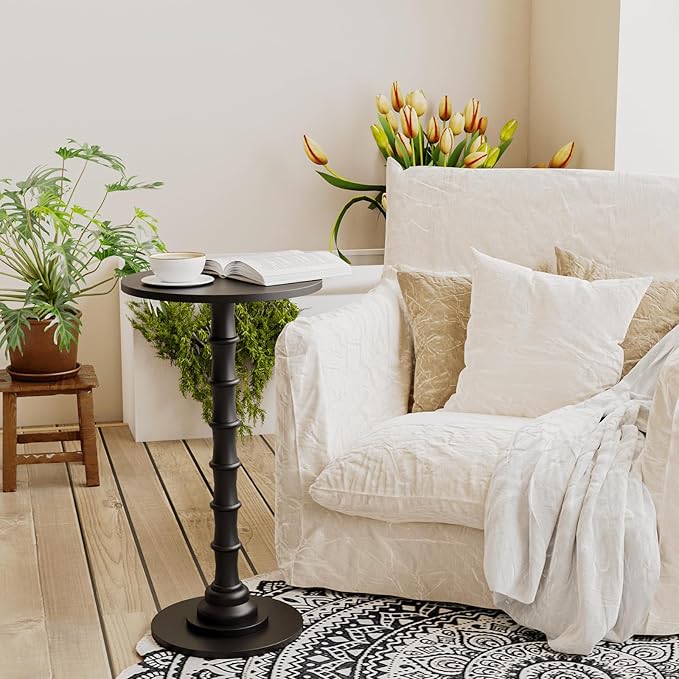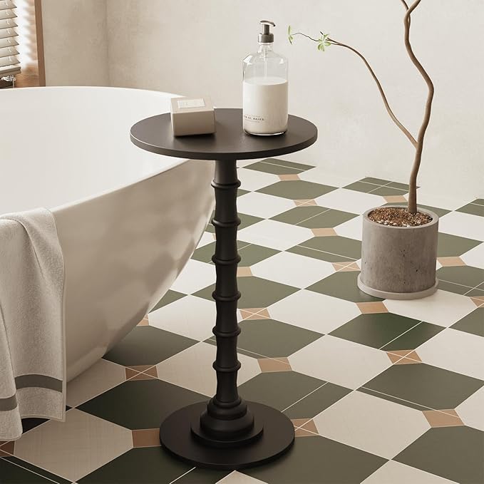 • 11.8''Dia. x 21.2''High Compact Size for Space-Saving Placement: With a diameter of only 11.8 inches and height of 21.6 inches, this side table takes up minimal floor space but offers enough tabletop area for daily use (e.g., holds a 16oz water bottle + a book + a small lamp). It’s lightweight (only 4.4 lbs) too—you can easily move it from the living room to the bedroom, or even take it to the balcony when you want to enjoy afternoon tea outdoors.