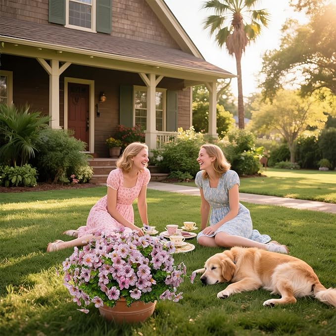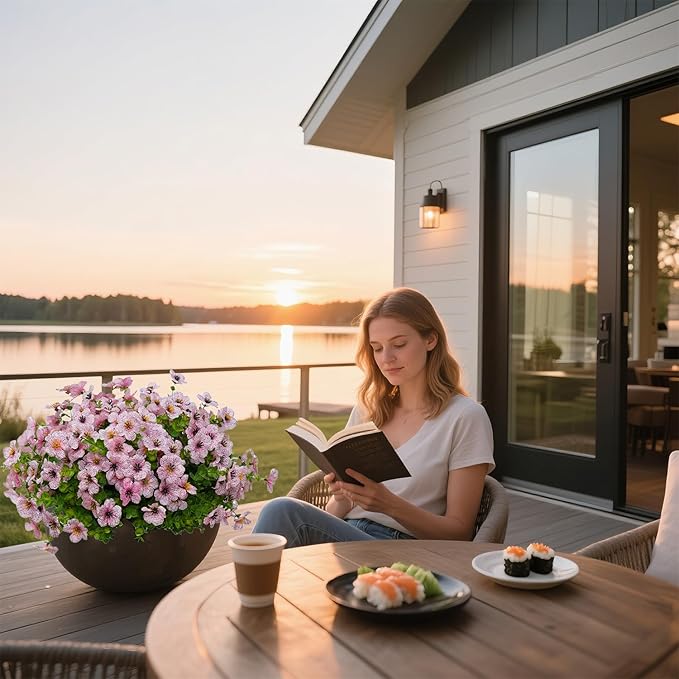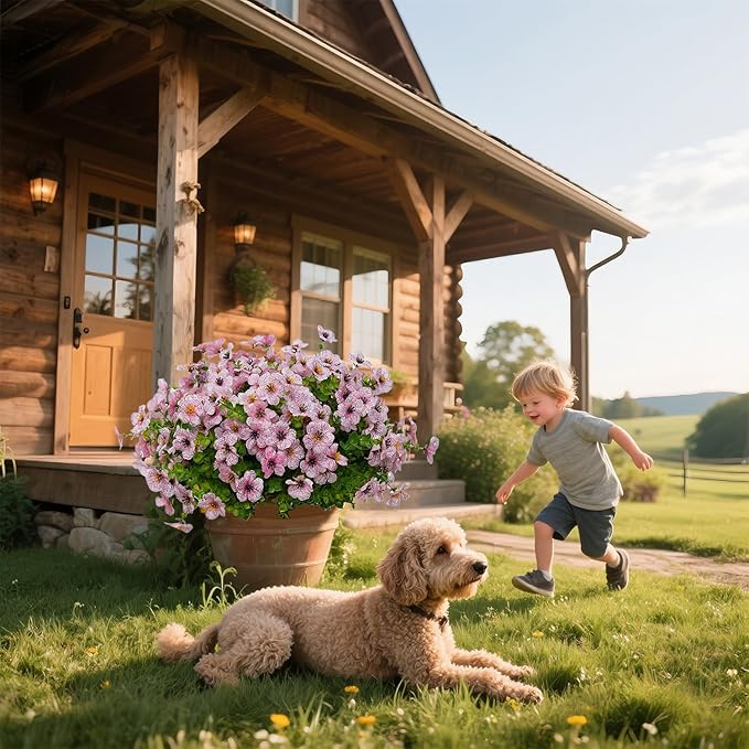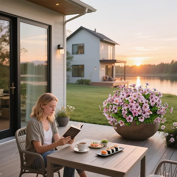 • Perfect for Outdoor/Indoor - Plastic flowers are ideal for outdoor porches,walkway,terraces windox box,front yard,pots,hanging planters,gardens,landscape,windowsills,allow you have beautiful color all year around.Also suit for birthdays,weddings,memorial place or grave,they can live anywhere and have withstood heavy rain storms and winds,outdoor faux plants