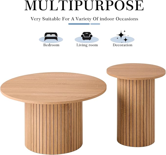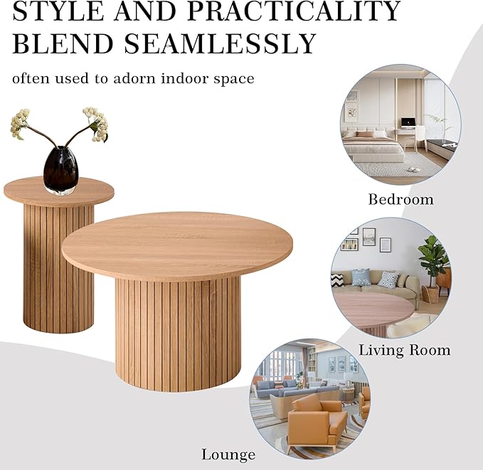 • [Sturdy and Durable] This round coffee table set of 2 is meticulously crafted from premium medium-density fiberboard, featuring a wood-grain veneer surface that is odor-free and visually appealing, ensuring worry-free use.