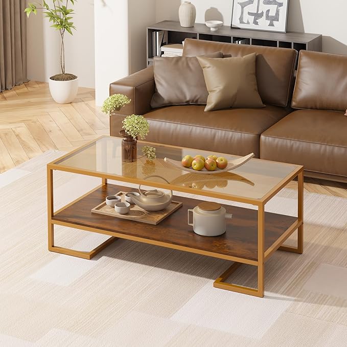 • Stable & Durable - Made with CARB/EPA Certified Wood for sturdy structure and prolonged lifespan. The thick tempered glass shelf and durable metal frame make the coffee table beautiful and safe