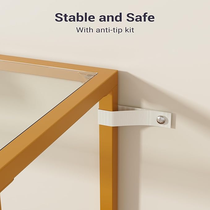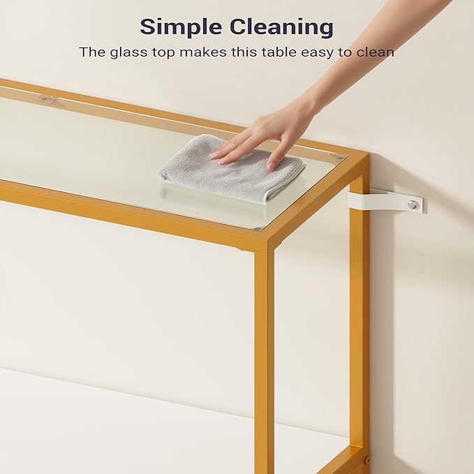 • Stable & Durable - Made with CARB/EPA Certified Wood for sturdy structure and prolonged lifespan. The thick tempered glass shelf and durable metal frame make the sofa table beautiful and safe