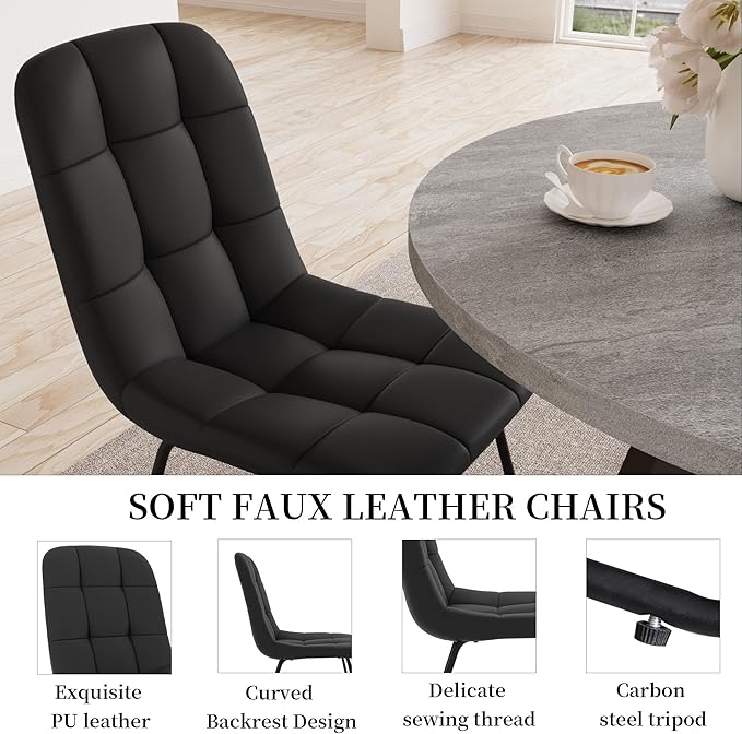• Modern Round Table Set: This stylish round dining table set features a round table crafted from thick MDF material with a unique textured finish, complemented by 4 PU leather chairs with ergonomic curved backs and high-elastic sponge seats.
