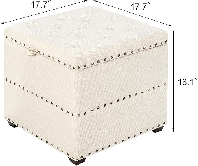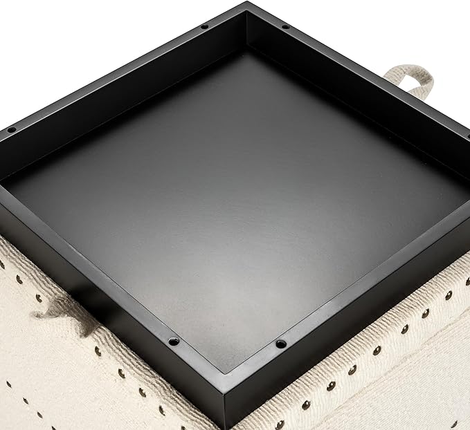 Adeco 18" White Square Storage Ottoman with Tray, Modern Cube Ottoman Coffee Table for Dorm, Bedroom