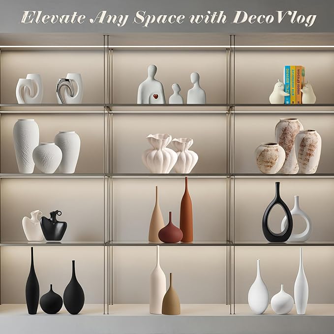 • Aesthetic Vases for Centerpiece Decoration - The timeless elegance of white and black makes our vases an ideal fit for any decor aesthetic. Whether adorning a rustic farmhouse mantel, a modern living room side table, a cozy kitchen counter, a minimalist bathroom shelf, a workspace desk, a closet nook, or a dining table centerpiece, these vases effortlessly blend in, enhancing the overall ambiance with their understated charm.