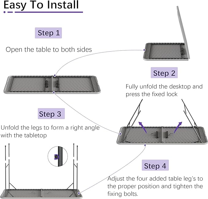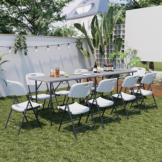 • Durable and Easy Maintenance - Constructed from a sturdy metal frame and a 1.4-inch thick, waterproof high-density polyethylene (HDPE) tabletop, this folding picnic table withstands the test of time and is remarkably easy to clean. Rounded edges enhance safety.