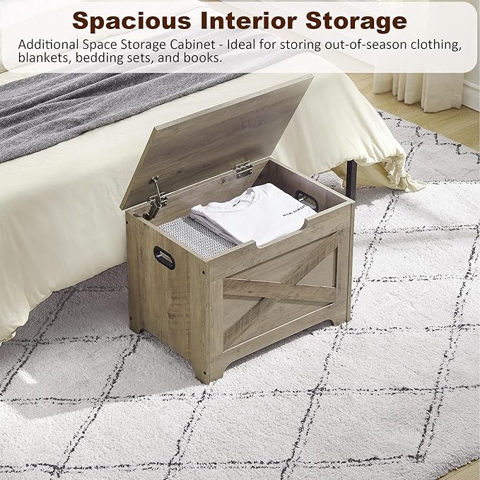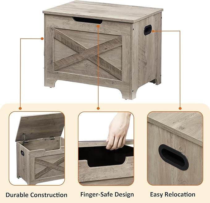 • 【Heavy-Duty Construction】Crafted with premium MDF panels in a minimalist retro design, this storage chest features a 300-lb capacity lift-top lid and a 180-lb rated interior compartment—engineered for lasting reliability.