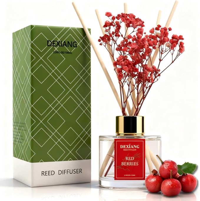 Reed Diffuser Set - 3.38 fl oz (100ml) Red Berries Home Fragrance Reed Diffuser for Bathroom Shelf Decor 6 Reed Stick