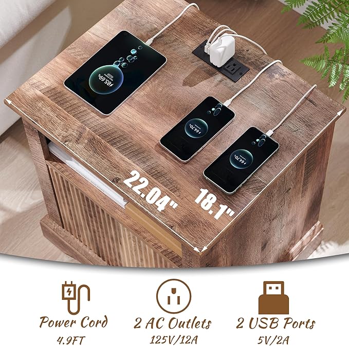 • 【Charging Station】The top of the end table has 2 USB ports and 2 AC outlets, allowing you to charge up to 4 devices at once. Keep your electronic devices charged as well as within reach
