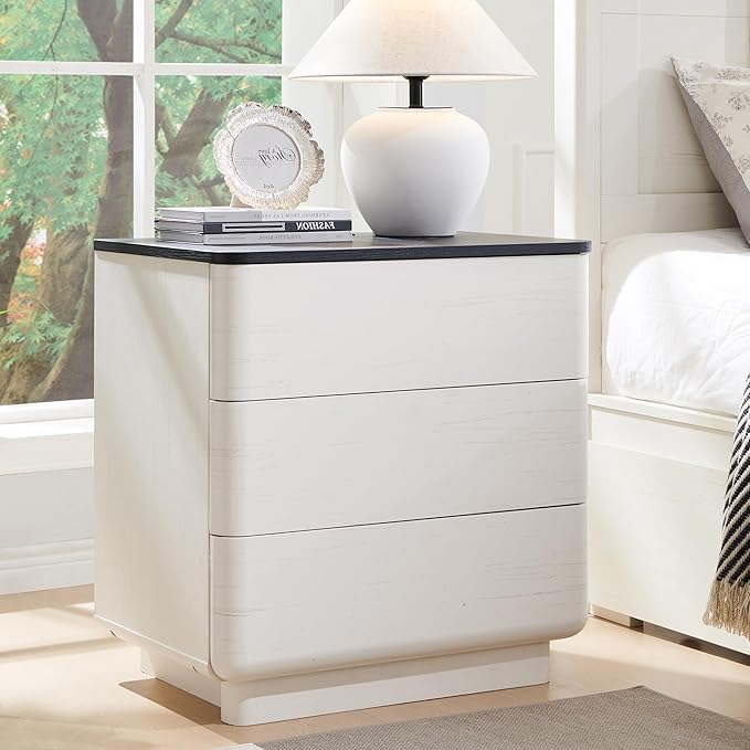 • Modern Style with Smooth Curves – Safe for Family Homes: Designed with clean lines and soft curved edges, this modern nightstand adds a sleek, minimalist touch to any bedroom or living space. Its handleless front and rounded profile bring a warm, family-friendly feel while keeping corners safe for kids and pets