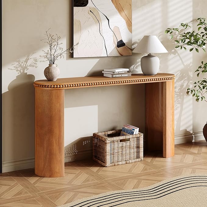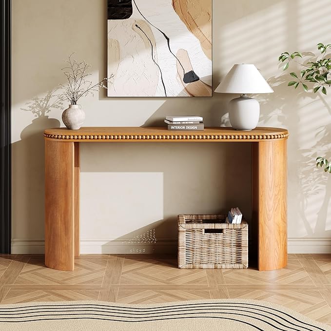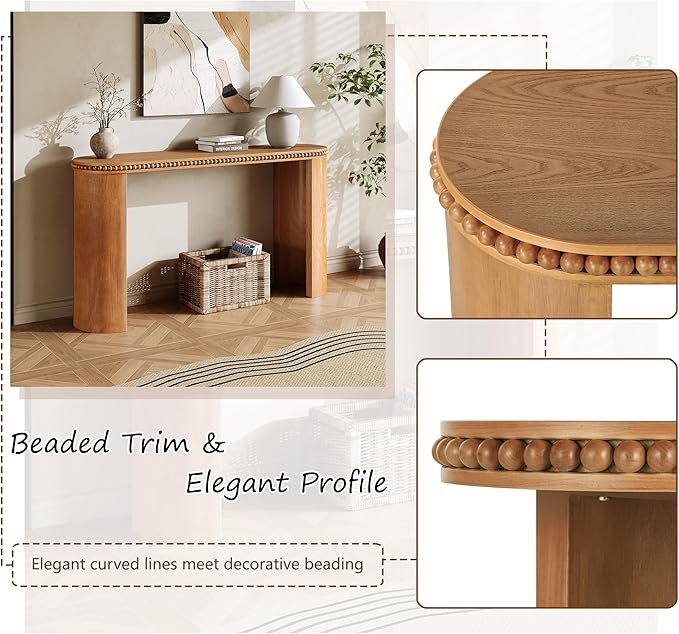 • 💗 Elegant Beaded Detailing and Clean Silhouette: Featuring a gently curved profile and a decorative beaded trim along the tabletop, this console table blends classical charm with minimalist elegance—perfect for refined spaces.