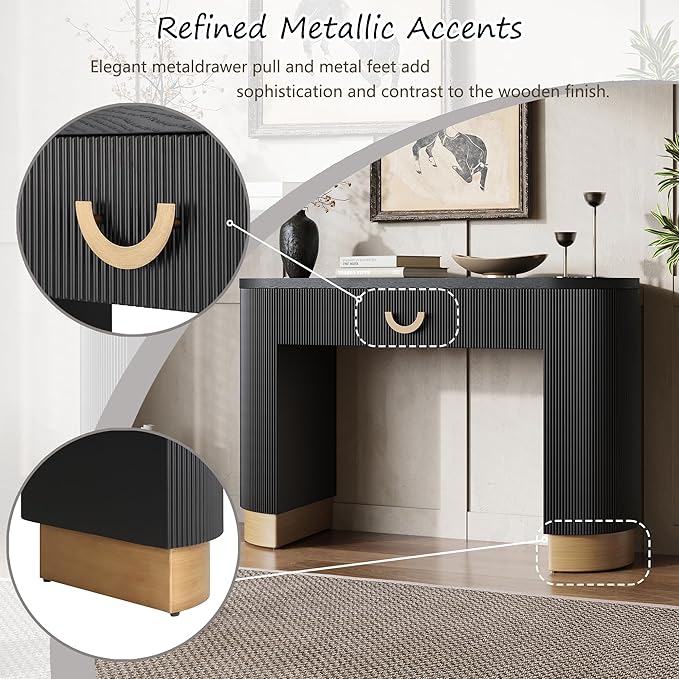 kevinplus 47.7'' Console Table Sofa Table with Drawer Storage Space for Entryway, Modern Elegant Fluted Design, Easy Assemble, Black & Gold