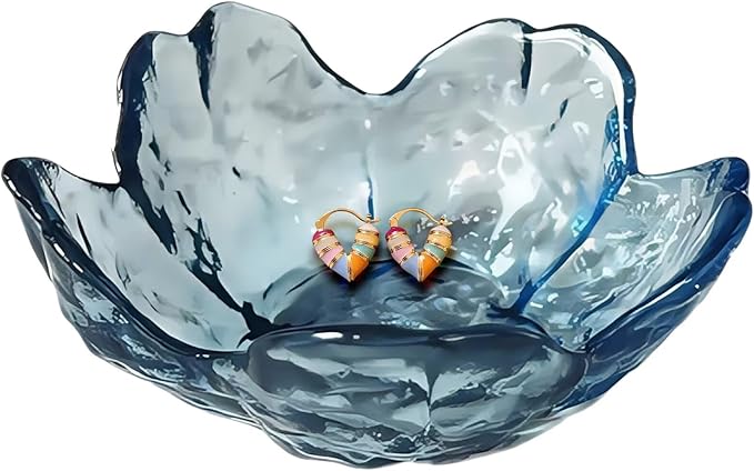 Blue Crystal Flower Jewelry Ring Dish, Clear Trinket Bowl, Cute Nightstand Decor Ring Holder for Women, Home Decor Gifts for Women, Wedding, Birthday, Mother's Day
