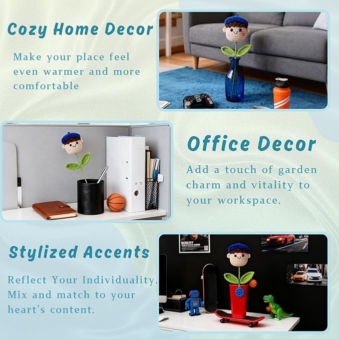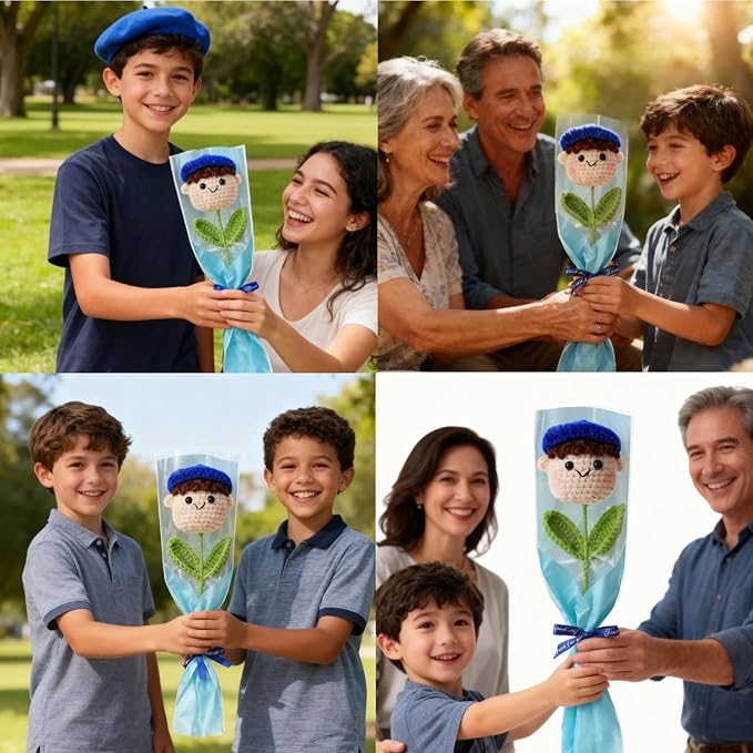 • 1. Meticulously Handmade, Built to Last- Expertly crocheted with premium cotton-acrylic yarn for a soft yet durable finish. Ready-to-gift in elegant single-bouquet packaging—perfect for friends, family, coworkers, or teachers.