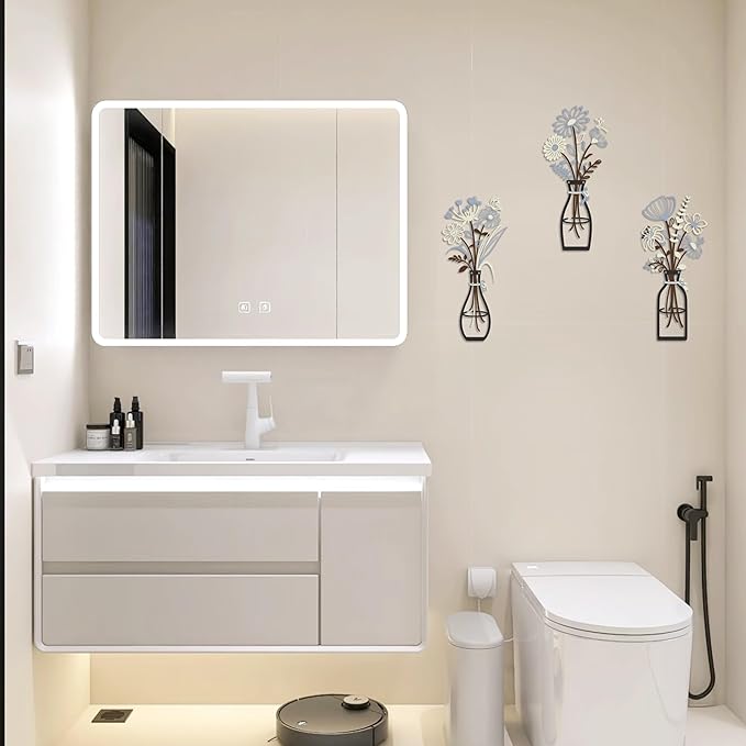 • DECORATIVE SET: Letter-Free Version, Create an elegant focal point with this three-piece set of metal wall art. Each piece measures 13.8" x 6.3" and features delicate floral silhouettes for a modern, wordless look.