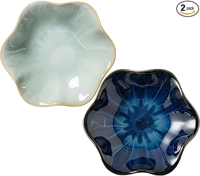 2Pcs Ceramic Jewelry Dish - Lotus Leaf Shape, for Ring Holder Necklace Small Key, Suitable for Mother Friend Sister, Gifts for Women, Cute Plate Trinket Tray, Home Decor (Green & Blue)