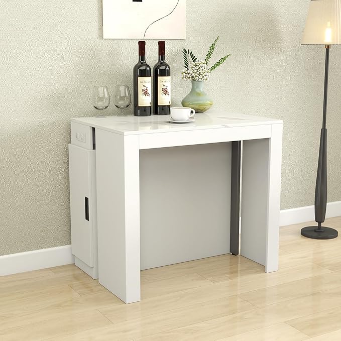 • 【USB & AC Outlets Included】Stay connected with 2 USB ports + 2 AC outlets, making this expandable table not only great for dining but also perfect as a workstation or console table with charging station. Ideal for modern smart homes.