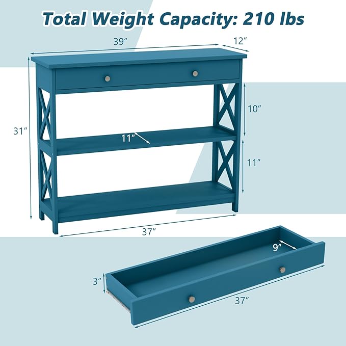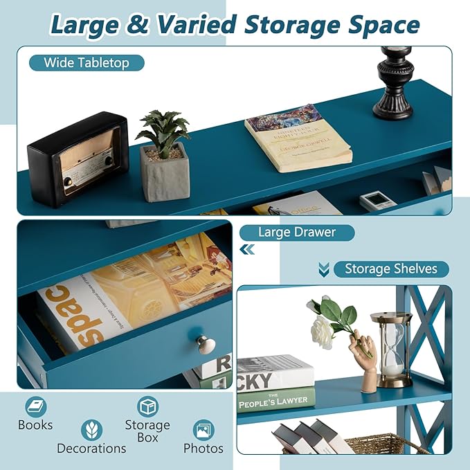 • [Sufficient Storage Space]: Measuring 39” x 12” (L x W) in size, this spacious tabletop can accommodate different belongings, such as photo frame, souvenir and other decorations. And the large drawer can store your key and wallets with ease. Besides, the 2 storage shelves can provide you with extra storage for boxes or shoes.