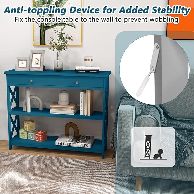• [Easy-to-Fit Modern Decoration]: Designed with simple yet modern appearance, this wood console table will become a captivating addition to your whole home décor. And this sofa table is equipped with the toppling preventing device which protects kids from accidental injury.