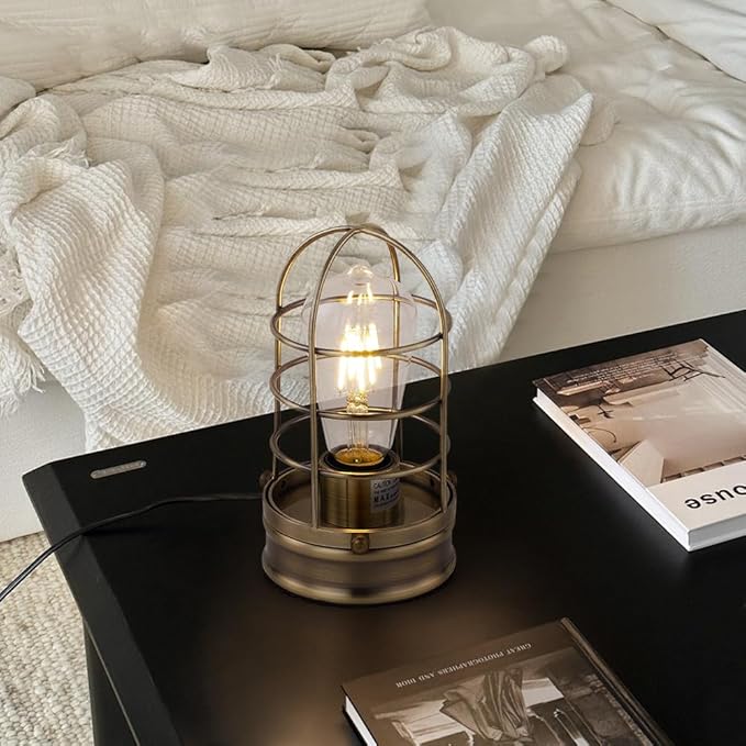 • Retro Bronze Vintage Cage Design.Industrial desk lamp is constructed of high quality iron wire which features a bronze cage metal lampshade.The small retro table lamp adopt the bronze wire cage which blends industrial charm and vintage aesthetics