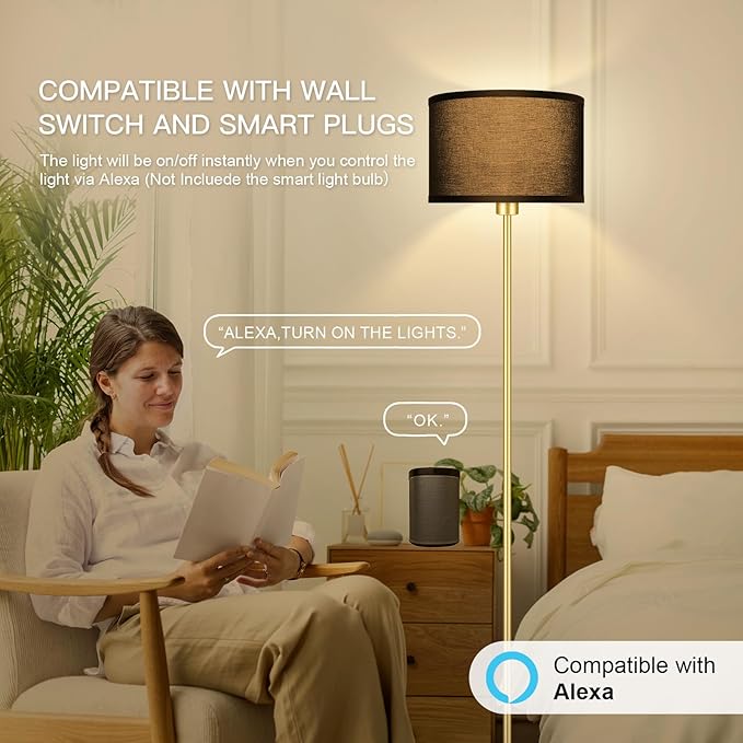 • 💡【Foot Switch and Compatible with smart devices】The floor lamp for the bedrooms is controlled by a foot pedal, which is easy to turn on/off when you lay on the sofa or bed, and gives the dimmable lamp with shade simple outlook; To keep path with smart lifestyle, you can plug this standing lamp in the smart device(not included), add it to your home appliances group, and easily controlled it by your phone; intelligent design help you enjoy easier life and home automation