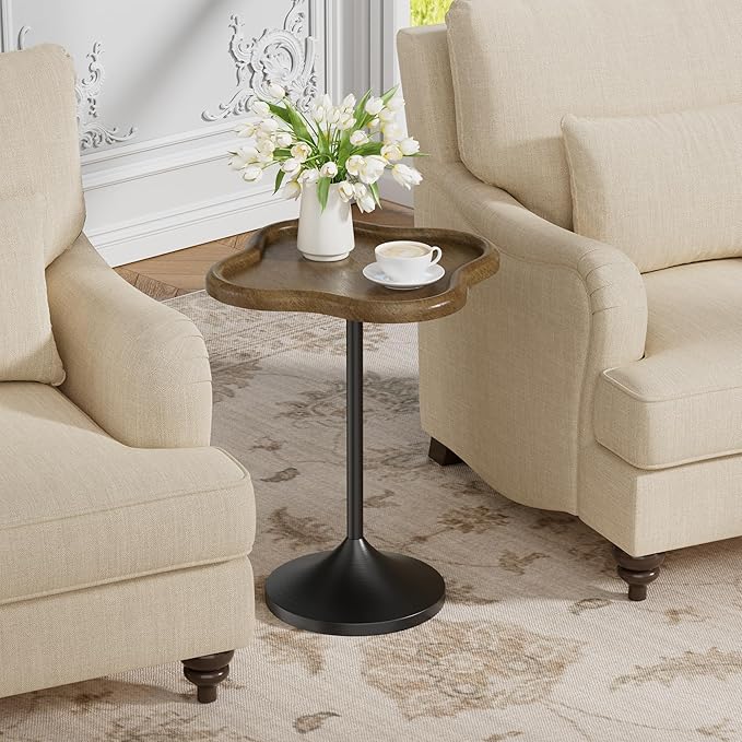 • 【Vintage Side Table】This large end table featuring a sleek and personality design with a flower shaped surface and fashion trumpet-shaped metal base, seamlessly complements any decor, adding an elegant touch to your living room, bedroom, or small spaces