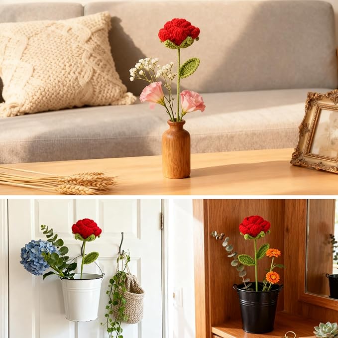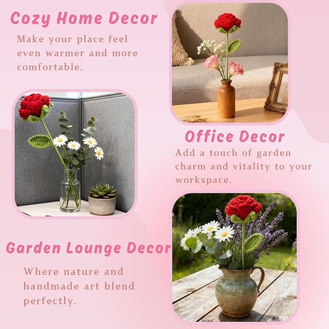 • 1. Meticulously Handmade, Built to Last- Expertly crocheted with premium cotton-acrylic yarn for a soft yet durable finish. Ready-to-gift in elegant single-bouquet packaging—perfect for friends, family, coworkers, or teachers.