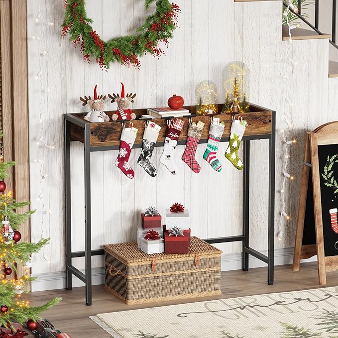 Narrow Console Table, 31.5" Entryway Table with Groove, Small Sofa Table for Hallway, Bedroom, Living Room, Foyer, Corridor, Office, Balcony, Rustic Brown