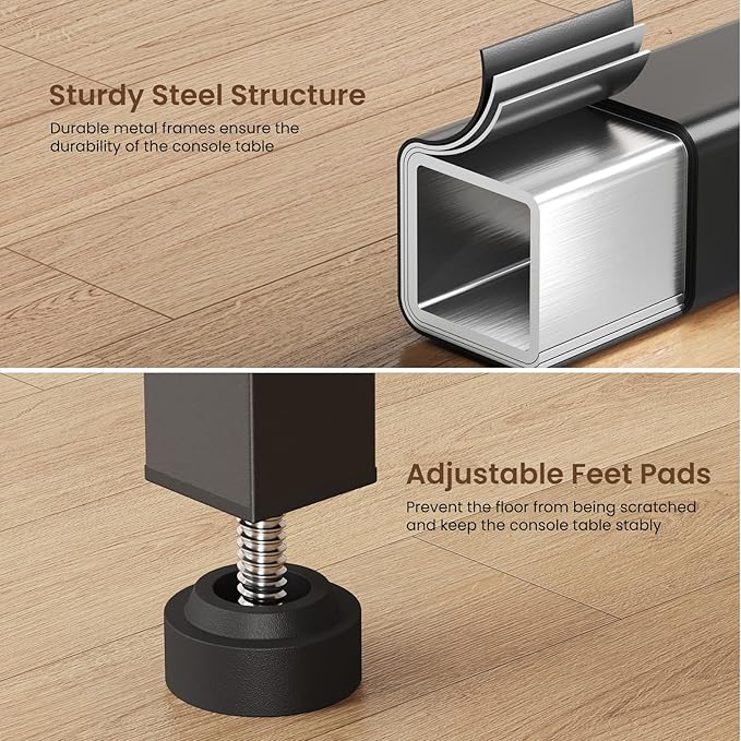 • 【Sturdy Construction】: Our entryway table is made of high-quality engineered wood and sturdy metal frame, provide strong structural support and high load-bearing capacity. Safe and eco-friendly, smooth, burr-free surface for comfortable touch. 4 adjustable feet on the bottom protect floors from scratches, make the table more stable. An anti-tip ensure additional security