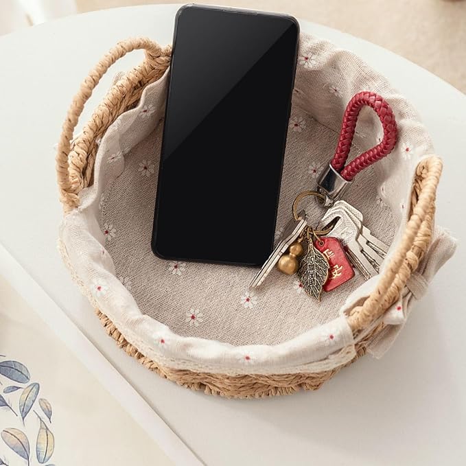 • 【Boho Decor Basket】This bohemian basket is versatile and can be used for a variety of small items. The fabric liner keep your food fresh and warm for longer. The liner can be removed, hand wash or machine wash and hang to dry. Perfect for serving candy, pastries, fruits. Your guests will be impressed!