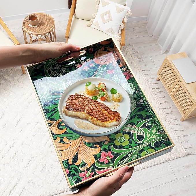 • 5 10-SECOND CLEAN Slick waterproof surface wipes clean instantly. Useful for All - With its graceful look and multiple functions, this will be a pretty accent tray to ottoman, coffee table, dining table, nightstand, vanity table etc.Except for daily use, it's also a reliable helper for different occasions like Christmas, birthday, wedding, baby shower, housewarming and other parties.