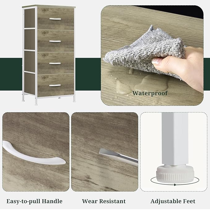 • 【Spacious 4-Drawer Storage】 Features four deep fabric drawers and a durable wooden top, providing ample space for clothes, accessories, books, and household essentials while keeping your space neat and organized.