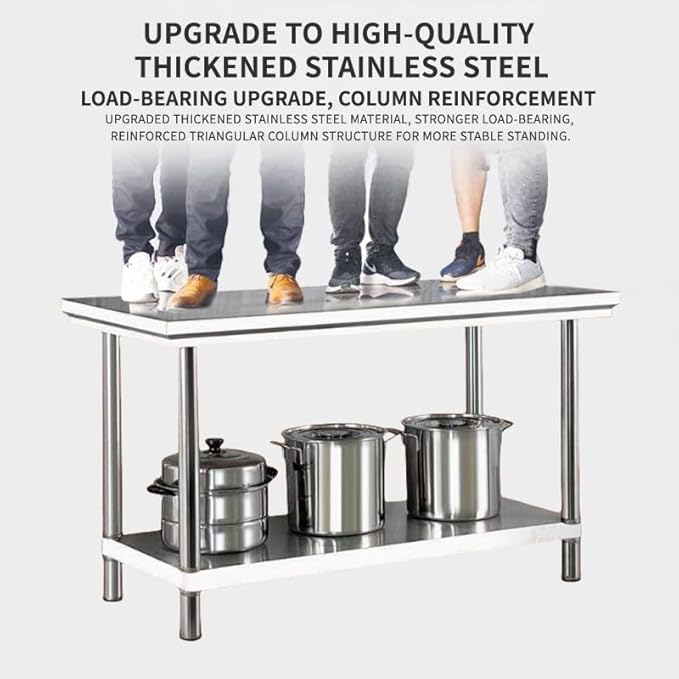 • Stainless steel work bench, 39 x 20 "commercial kitchen preparation and work bench, with storage rack, suitable for home kitchen, dining room, garage, warehouse, hotel, silver. Outdoor, indoor, easy to install