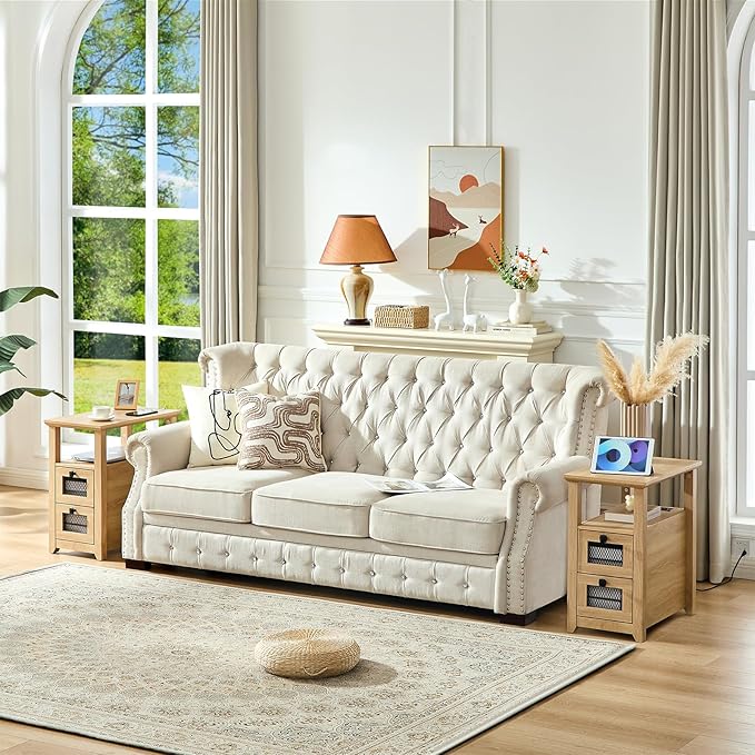 • 【XXL Side Table with Charging Station】Low battery? Don't worry. This end table comes with 2 AC outlets, 2 USB ports and a 5ft power cord for your charging needs. You can easily charge mobile phones and other devices as you need. Faster charging efficiency, stabler charging and no damage to your devices!
