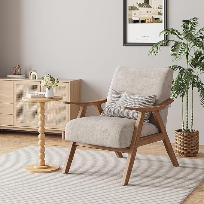 • Modern Round Side Table: This table showcases a sophisticated walnut-grain finish in a unique color, adding a touch of modern style to any room. Its circular tabletop offers a safer, rounded edge, while an elegant wooden sphere connector on one leg serves as a distinctive design detail. Perfect for minimalist decor, it effortlessly elevates your living space.