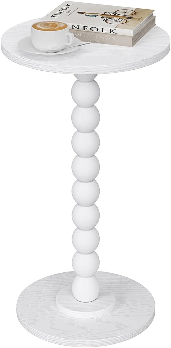 Round Side Table, Small Drink Table for Small Spaces, Pedestal End Table for Living Room, Modern Accent Nightstand with Solid Wood Leg for Bedroom, Corners and Office White Color UTBT005W