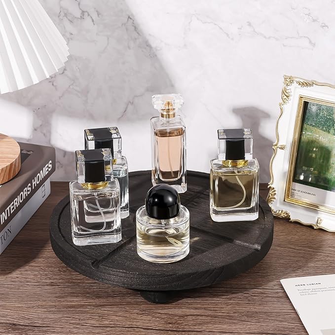 10'' Round Wooden Tray Pedestal Stand, Farmhouse Bathroom Decor Riser for Soap Dispenser, Perfume, Candle, 10'', Matte Black