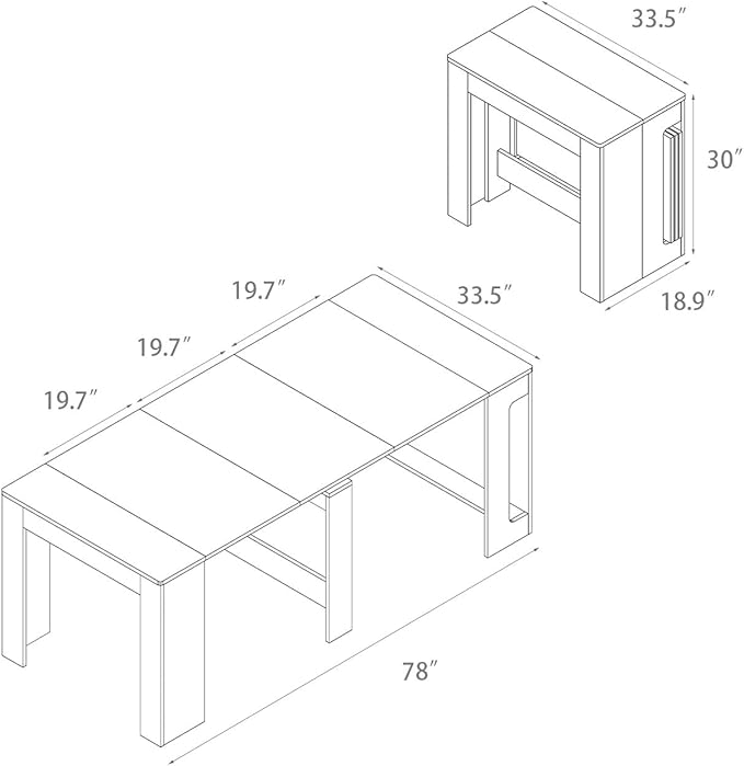 • Space-Saving & Multi-Functional – Transform your dining area in seconds. This extendable dining table expands from a compact 19" console to a spacious 78" dining table, comfortably seating 2–8 people. Perfect for family dinners, parties, or everyday use in apartments and houses alike.