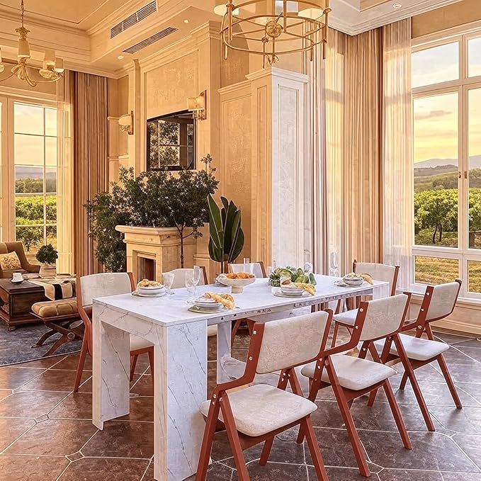 • Strong & Stable Build – Crafted with durable engineered wood and reinforced metal hardware, this expandable dining table can hold over 300 lbs. The solid wide legs ensure stability whether fully extended or compact.