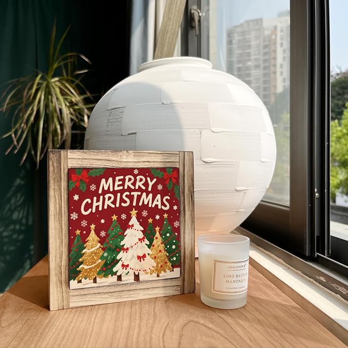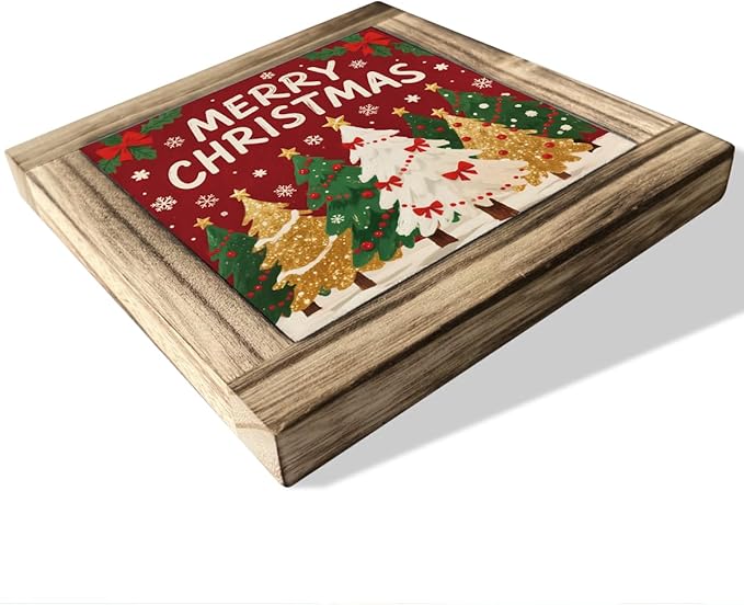 Merry Christmas Decoration Gift, Christmas Tree Decor Art, Decorative Wooden Box Sign, Modern Farmhouse Home Decor, Xmas Trees Decoration for Home Office Cafe Bar Club
