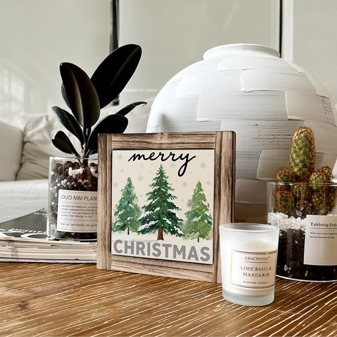 Merry Christmas Wood Sign, Christmas Tree Decors Art, Xmas Home Decors, Decorative Wooden Table Signs, Farmhouse Tabletop Decor, Xmas Holiday Party Decor Ornaments