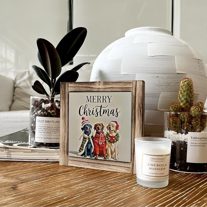 Funny Cute Christmas Decor, Wood Plaques Desk Decors, Decorative Table Sign, Farmhouse Christmas Decorations Indoor, Dog Pet Lover Home Decor for Xmas Holiday, Merry Xmas Gift
