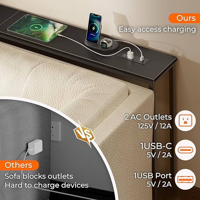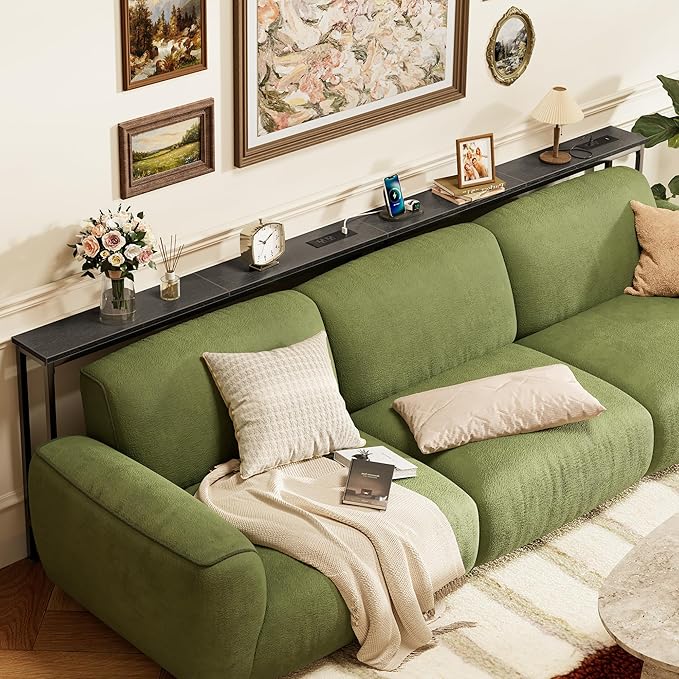 • 【Easy to Assemble & Fits Anywhere】Whether behind a sofa, in an entryway, or along a narrow wall, this couch table behind sofa is the perfect storage solution for tight spaces. Designed to leave room for wall vents and easy airflow. Comes with clear instructions, labeled parts, and tools included, you'll have this sofa table with outlet set up in no time