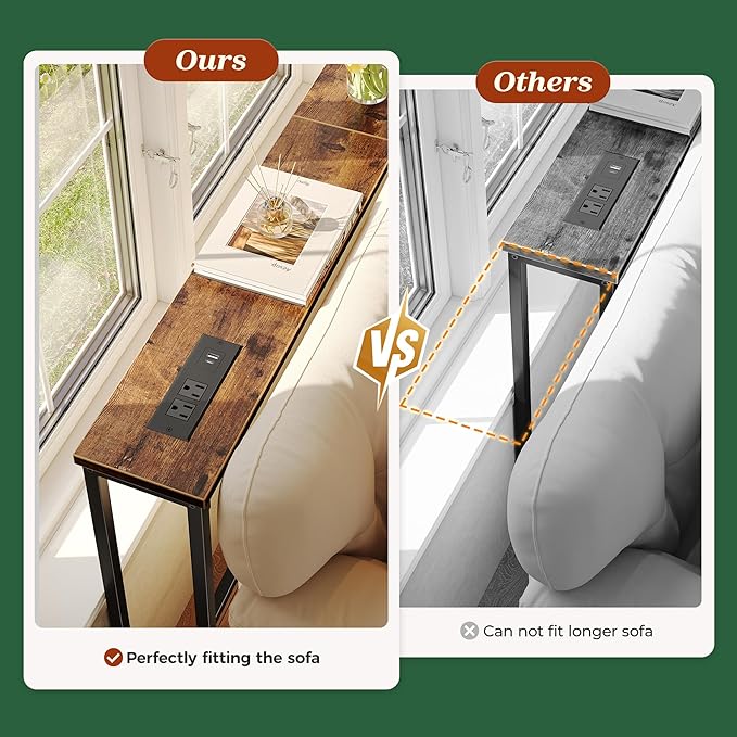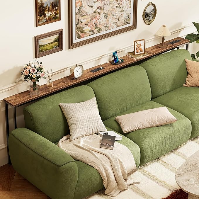 • 【Easy to Assemble & Fits Anywhere】Whether behind a sofa, in an entryway, or along a narrow wall, this couch table behind sofa is the perfect storage solution for tight spaces. Designed to leave room for wall vents and easy airflow. Comes with clear instructions, labeled parts, and tools included, you'll have this sofa table with outlet set up in no time