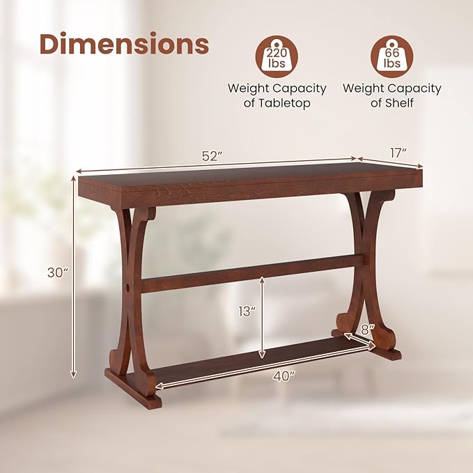 Giantex 52" Narrow Console Table, Vintage Accent Entryway Table with Open Storage Shelf, Long Wooden Behind Couch Sofa Table with Anti-tip Kit for Small Spaces Living Room Hallway (Walnut)