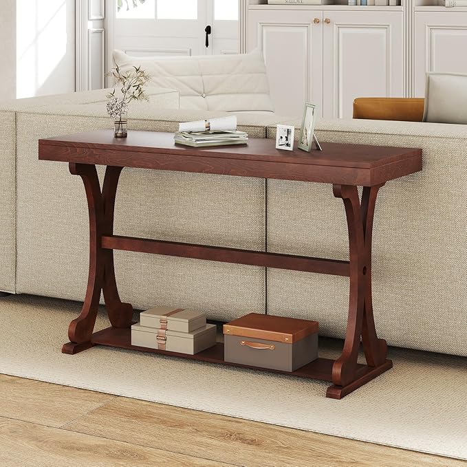 • [Ample Storage]: The smart 2-tier design of this narrow console table gifts you a generous 52" top for statement pieces and a lower shelf for baskets or books. Enjoy clutter-free living as this console table keeps everyday essentials within easy reach yet out of sight.
