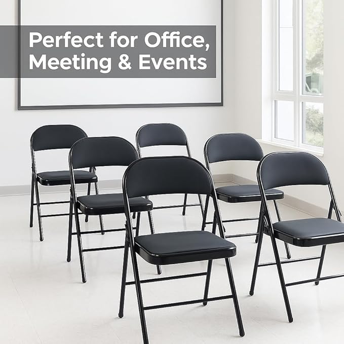 • 【Foldable & Space-Saving】Designed to fold flat in seconds, these padded folding chairs are easy to carry, store, and stack, making them perfect as extra seating for guests, parties, weddings, or office conferences.