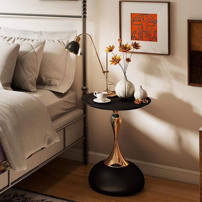 • 【 Modern Unique Design 】Black matte round edge table. This side table is made of high-density iron. The anti-drop design at the edge of the round tabletop, smooth lines, and a sturdy hemispherical base provide stability, easily blending into your modern home decoration.