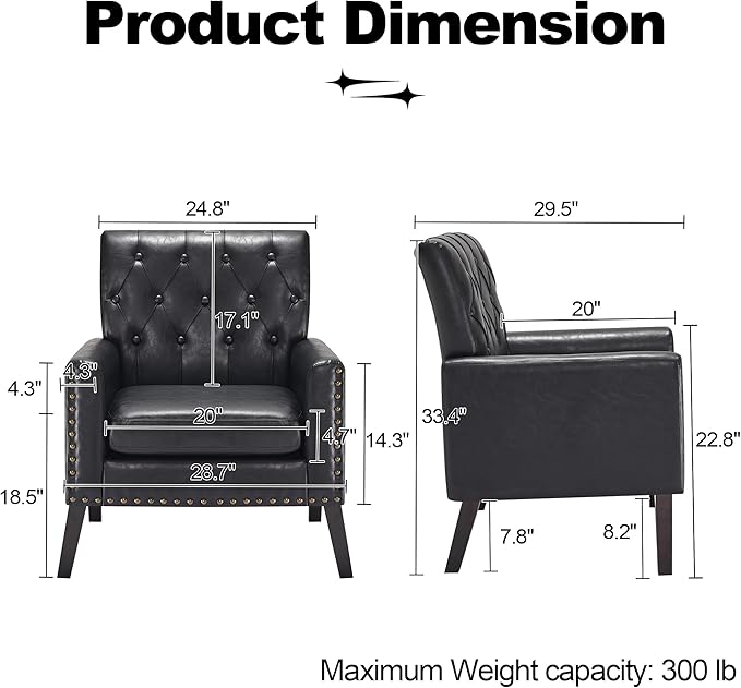 • Ergonomic Comfort & Support – Designed with a 30D high-resilience foam-padded seat and an ergonomic high backrest, this accent chair provides exceptional lumbar support and comfort. Its wide seating area accommodates users up to 300 lbs, perfect for long hours of reading or relaxing